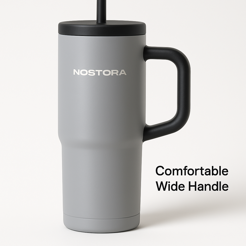 Nostora™ Premium Stainless Steel Large Thermo Tumbler (Handle + Straw)